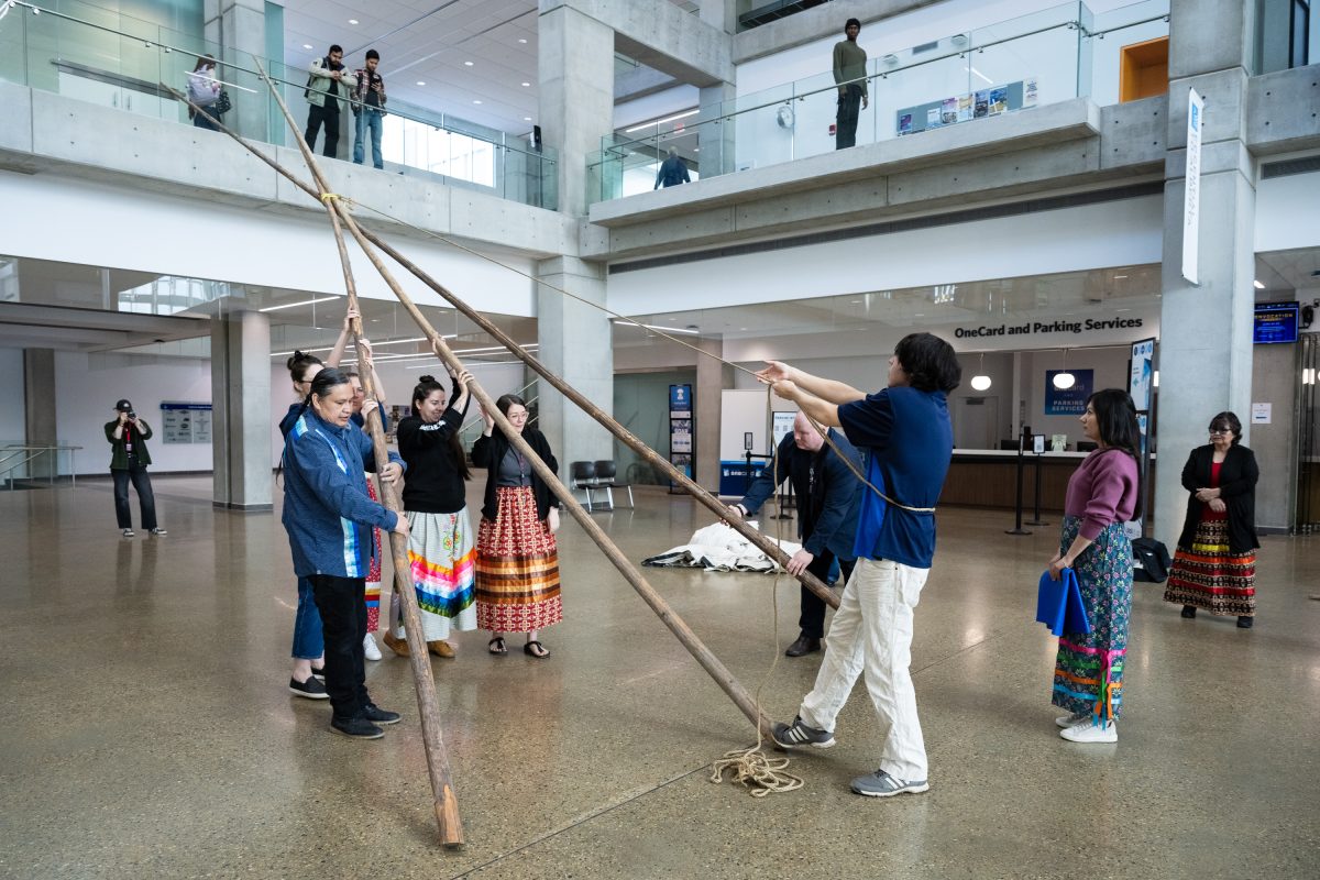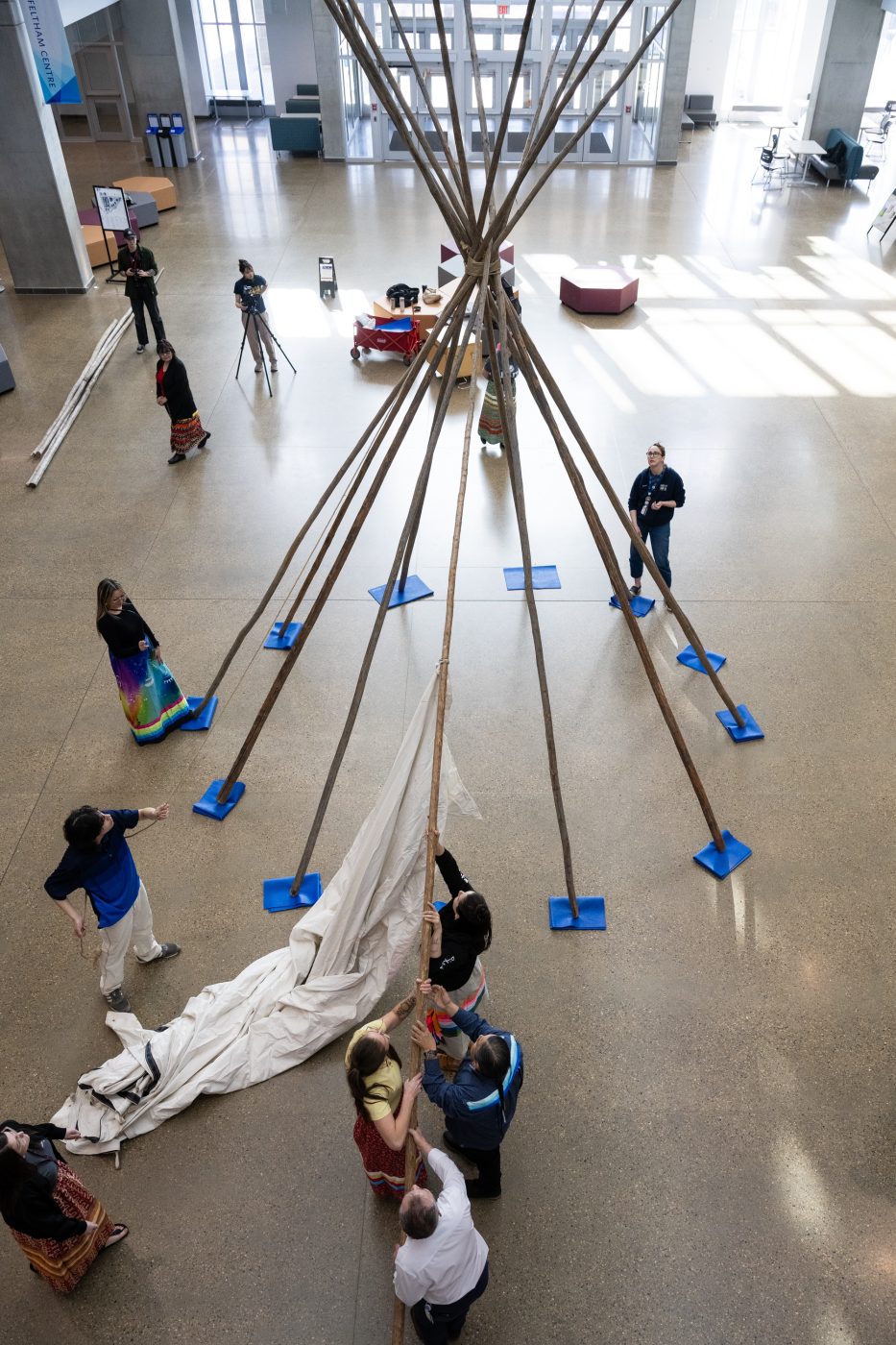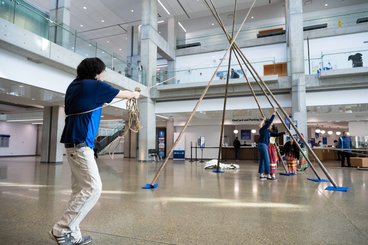 NAIT’s Nîsôhkamâtotân Centre held its annual tipi raising ceremony in the Feltham Centre (CAT) Building on April 10, 2026. The ceremony is a celebration in Indigenous culture that represents new beginnings.