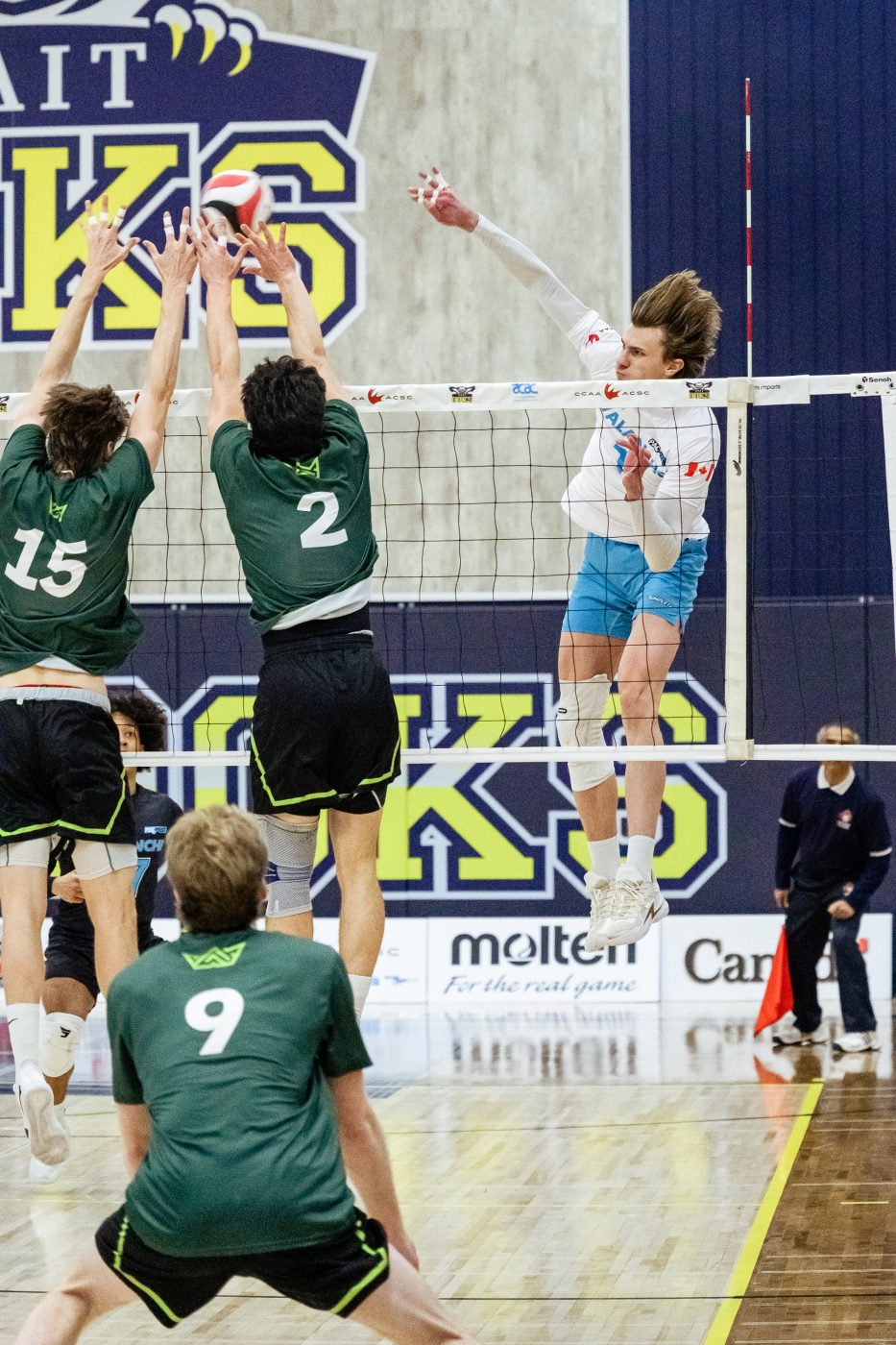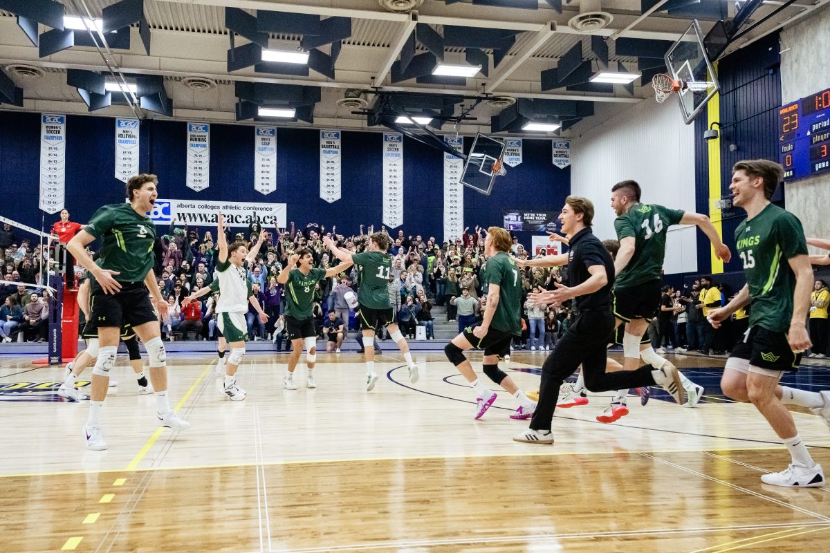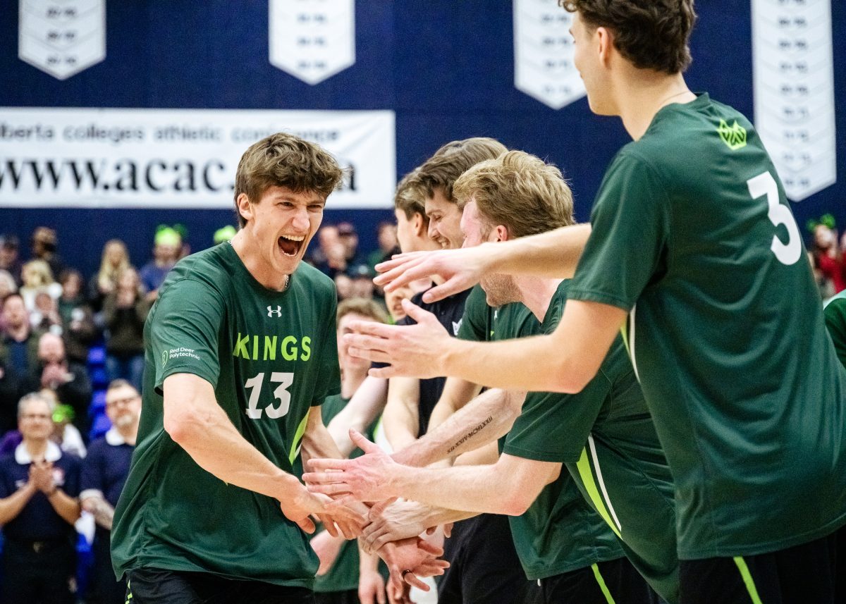 Brett Lower (9, centre) and Colby Nemeth (3, left) lead the Red Deer Polytechnic men’s volleyball team lineup during the opening ceremony of the CCAA men’s volleyball championship gold medal match at NAIT Gymnasium in Edmonton on Saturday, March 14, 2026.Diego Policarpo (15, right) and Dylan Annala (1, right) lead the College of the Rockies men’s volleyball team during the national anthem playing at the CCAA men’s volleyball championship gold medal match at NAIT Gymnasium in Edmonton on Saturday, March 14, 2026.Evan Mah (2, left) serves for the Red Deer Polytechnic Kings in the first set of the CCAA men’s volleyball championship gold medal match at NAIT Gymnasium in Edmonton on Saturday, March 14, 2026.Reece Clarke (centre) of the College of the Rockies Avalanche dives to receive the ball during the CCAA men’s volleyball championship gold medal match at NAIT Gymnasium in Edmonton on Saturday, March 14, 2026.Crowds and fans cheer for the Red Deer Polytechnic Kings during the CCAA men’s volleyball championship gold medal match at NAIT Gymnasium in Edmonton on Saturday, March 14, 2026.A College of the Rockies Avalanche fan blows a trumpet in celebration of a point during the CCAA men’s volleyball championship gold medal match at NAIT Gymnasium in Edmonton on Saturday, March 14, 2026.Dylan Annala (right) of the College of the Rockies Avalanche spikes the ball against blockers from the Red Deer Polytechnic Kings during the CCAA men’s volleyball championship gold medal match at NAIT Gymnasium in Edmonton on Saturday, March 14, 2026.Owen Langberg (centre) of the Red Deer Polytechnic Kings tosses the ball against Julius Molnar (centre) of the College of the Rockies Avalanche during the CCAA men’s volleyball championship gold medal match at NAIT Gymnasium in Edmonton on Saturday, March 14, 2026.The Red Deer Polytechnic Kings celebrate each point along with a packed crowd during the CCAA men’s volleyball championship gold medal match at NAIT Gymnasium in Edmonton on Saturday, March 14, 2026.The College of the Rockies Avalanche celebrate each point along with a packed crowd during the CCAA men’s volleyball championship gold medal match at NAIT Gymnasium in Edmonton on Saturday, March 14, 2026.Aaron Schulha coaches the Red Deer Polytechnic Kings during the CCAA men’s volleyball championship gold medal match at NAIT Gymnasium in Edmonton on Saturday, March 14, 2026.Cisco Farrero (right) coaches the College of the Rockies Avalanche during the CCAA men’s volleyball championship gold medal match at NAIT Gymnasium in Edmonton on Saturday, March 14, 2026.Colby Nemeth (centre) of the Red Deer Polytechnic Kings hits the game point in the final set during the CCAA men’s volleyball championship gold medal match at NAIT Gymnasium in Edmonton on Saturday, March 14, 2026.The Red Deer Polytechnic Kings and coaches celebrate the win against the College of the Rockies Avalanche during the CCAA men’s volleyball championship gold medal match at NAIT Gymnasium in Edmonton on Saturday, March 14, 2026.Owen Langberg (13, left) is named player of the game for the Red Deer Polytechnic Kings during the CCAA men’s volleyball championship gold medal match at NAIT Gymnasium in Edmonton on Saturday, March 14, 2026.Diego Policarpo (right) is named player of the game for the Red Deer Polytechnic Kings during the CCAA men’s volleyball championship gold medal match at NAIT Gymnasium in Edmonton on Saturday, March 14, 2026.The Red Deer Polytechnic Kings raise their title and banner in celebration of their win during the CCAA men’s volleyball championship gold medal match at NAIT Gymnasium in Edmonton on Saturday, March 14, 2026.The College of the Rockies Avalanche garner silver at the CCAA men’s volleyball championship gold medal match at NAIT Gymnasium in Edmonton on Saturday, March 14, 2026.The Red Deer Polytechnic Kings pose for a team photo after winning the CCAA men’s national volleyball championship at NAIT Gymnasium in Edmonton on Saturday, March 14, 2026.